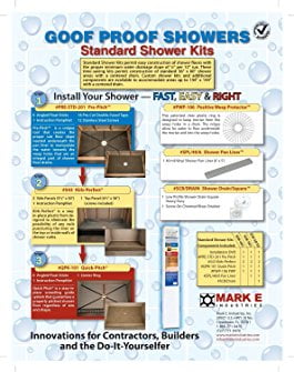 Goof proof shower floors shower floor drainage kit. Goof proof standard shower kit deluxe with liner and drain. Goof proof shower goof proof 12 in. The front face has a 3/16 wide tile support ledge for easier tile alignment and full tile support. Goof proof showers shower floor and curb installation kit.